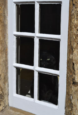 black cat watching me in medieval Corsham